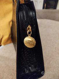borsa pelle nera stampa coccodrillo firmata Carlo Pulicati