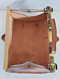 Splendida borsa da medico vintage (modello Gladstone) realizzata in pregiata vera pelle di colore marrone caldo (cuoio/cognac). Un pezzo dal fascino senza tempo, perfetto per professionisti, collezionisti di modernariato, come borsa da viaggio "weekender" alternativa ed elegante.
