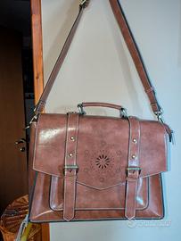 Borsa a tracolla stile vintage in ecopelle, color cuoio. Ideale per l'università, il lavoro o il tempo libero, può contenere documenti A4, libri o un laptop. I dettagli sono molto curati: fibbie decorative color oro invecchiato, cuciture a contrasto e un elegante motivo a fiori traforato sulla patta. La borsa è dotata di due tasche frontali e una tasca interna con cerniera, oltre alla tracolla rimovibile e regolabile e un manico superiore. Aggiungi un tocco vintage e sofisticato al tuo look con questa borsa stile cartella. Perfetta per chi ama il fascino del passato, ma cerca la praticità del presente. Il colore cuoio si abbina a tutto, dai jeans