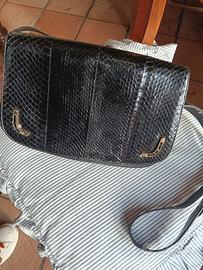 Vendo borsa vintage in vera pelle con lavorazione effetto rettile, modello con tracolla. Elegante senza tempo.