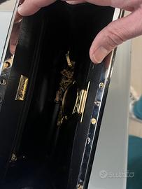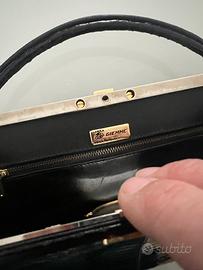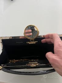 Borsa rigida da sera in vera pelle nera effetto coccodrillo, con: