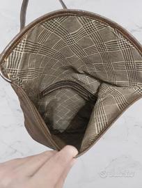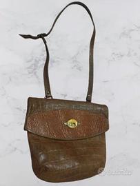 Borsa vintage marrone con tracolla, in similpelle coccodrillo. Riporta uno stemma antico sul davanti. La borsa chiude a portafoglio ( ripiegandola su se stessa) In ottime condizioni SPEDIZIONE RAPIDA IN H24