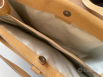 Borsa Missoni in pelle gialla, modello vintage. Usurata in 3 punti sul manico. Misure 35 × 20 × 9 cm