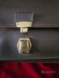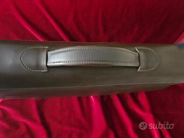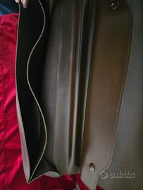 Cartella vintage in pelle marrone con un design classico "a busta", caratterizzata da una patta rettangolare e due chiusure a scatto dorate posizionate nella parte inferiore. Questo modello presenta una maniglia superiore per il trasporto a mano,2 scomparti principali e un'altro scomparto con chiusura bottoni a pressione, tipica delle borse da lavoro o portadocumenti professionali. Sebbene non sia visibile un logo specifico, questo stile di borsa è comune tra diversi marchi di alta moda e artigianato vintage: Roberta di Camerino:Esistono modelli vintage degli anni '60 con un'estetica molto simile, realizzati in pelle marrone con dettagli metallici dorati. Prada:Il brand ha prodotto diverse cartelle portadocumenti in pelle marrone dalle linee minimaliste e squadrate, spesso con chiusure metalliche a contrasto. Artigianato Vintage:Molte di queste borse provengono da produzioni artigianali italiane degli anni '70 o '80, spesso definite come "valigette del nonno" o borse da scuola classiche per la loro robustezza e semplicità. Misure::41×27×9, a causa dei anni le chiusure metalliche sono un po rovinati (vedere le foto), diversamente e in ottime condizioni, come nuova. Le foto sono parte integrante della descrizione.