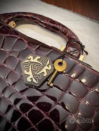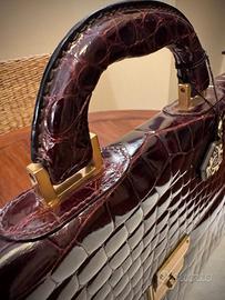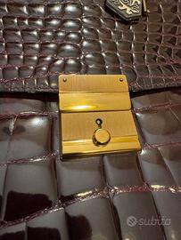 Borsa porta documenti Vintage in vera pelle di Coccodrillo, anni 80/90, residuo di magazzino.