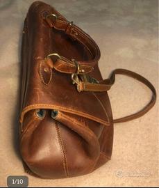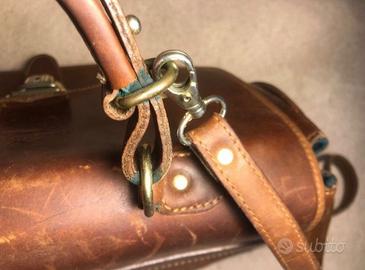 Borsa in pelle marrone di alta qualità, perfetta per un look classico.Interno rivestita in lana verde con decorazioni.Vintage Anni 1980. Alcune imperfezioni visibili in foto ma nel complesso perfetta. Munita di tracolla.