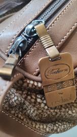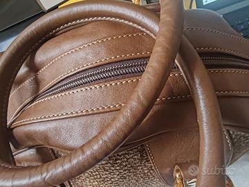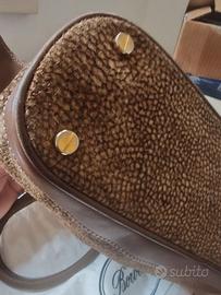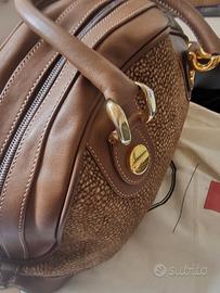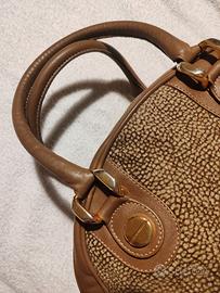 Borsa Vintage perfettamente conservata , manici a mano, in pelle d'agnello scamosciata, con texture , occhio di pernice (l'effetto micro maculato simbolo della Maison Borbonese a partire dagli anni 70). Creata dal sodalizio di Borbonese con Redwall, n.90536. una delle prime. Misura media, chiusura con cerniera. Bellissima.