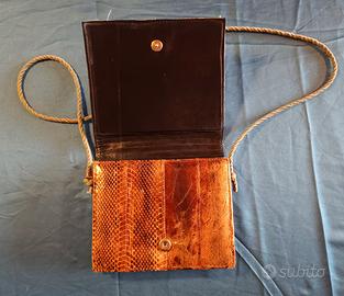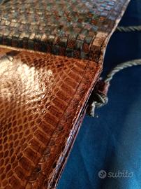 Vendo borsetta vintage in vera pelle di serpente (probabile pitone) con parte frontale intrecciata multicolore.