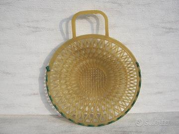 ORIGINALISSIMA e introvabile borsa degli anni 50 perfettamente conservata in plastica, di forma rotonda , con manici . Diametro cm 39, con i manici cm 47.
