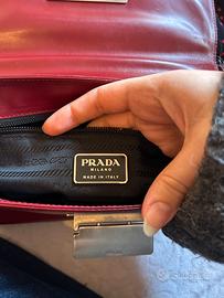Incantevole accessorio vintage firmato Prada, in pelle, nella tonalità del bordeaux con tracolla regolabile Materiale: pelle. Interno in tessuto Colore: rosso