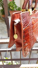 Borsa vintage Stevens di vera pelle di coccodrillo, usata pochissimo. Ottime condizioni. Dimensioni: 35x23x18cm. Manico cm. 27, due scomparti interni + una tasca con zip. Chiusura con cerniera.