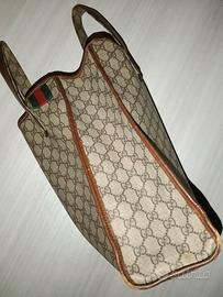 Articolo ( Vintage ) della linea Sherry di Gucci classificato come usato ma in buone condizioni. La borsa tote Gucci GG Supreme Sherry è un accessorio elegante realizzato in una combinazione di PVC e pelle, presentato in un colore beige marrone. No scatole per l'articolo e sacchetto antipolvere, invio del solo articolo in foto-Numero di prodotto : 211135\Numero di serie : 211135 001364. Colore Beige / Rosso - Materiale Tela GG - Dimensioni(cm) : L29cm x A33cm x P11cm (Circa) / Caduta Manico 17cm (Circa)\Dimensioni(pollici) : L11.4 x A13.0 x P4.3 pollici (Circa) / Caduta Manico 6.7 pollici (Circa). Usata ma in buone condizioni ( come da foto leggera perdita di forma ed abrasione angoli alla base per sfregamento). Vendita anche con consegna a mano Milano città.