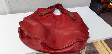 splendida borsa vernice color rubino con inserti in metallo invecchiato.
