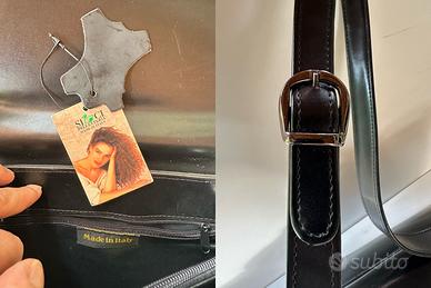 Borsa vintage in pelle nera di SICI Pelletteria made in Italy. Tre scomparti interni (uno con cerniera) + taschino con cerniera.