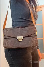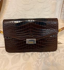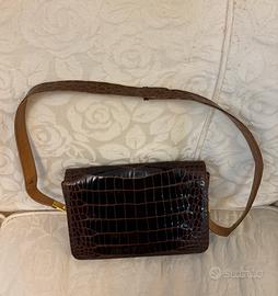 Borsa da spalla in autentico e pregiatissimo coccodrillo baby centrato, vintage anni 60. Multi tasche interne