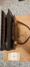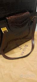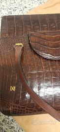 vendo borsa vintage in vera pelle di coccodrillo, marrone scuro, con garanzia