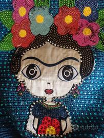 Borsa Wayuu originale fatta a mano rappresentando la faccia di Frida Kalho. Borsa fatta a mano completamente decorata con vari cristalli. Borsa realizzata dal gruppo indios Wayuu(Guajiro) situato in Colombia nella penisola Guajira affacciata sul mar dei Caraibi. Adatte ad un uso quotidiano sia come borsa da passeggio che come borsa da mare. Dimensioni: altezza 26cm circa, diametro 23cm circa. Importata direttamente dalla Colombia, questo tipo di borsa si chiama borsa a "secchiello".