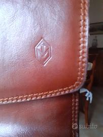 Borsa 24 ore x ufficio in vera pelle. Color marrone, con tre scomparti e tre cerniere esterne.