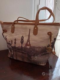 borsa Ynot Parigi usata, presenta dei difetti nei manici e nella parte sotto un po' sbiadita e macchiata all'interno