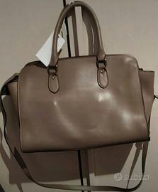 Borsa in vera pelle, chiusura cerniera e dotata di tasca interna con chiusura zip e due taschini.