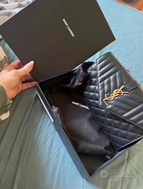 Borsa pochette, elegante in pelle nera, ysl, completa di scatola e sacca originale.