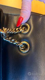 LA BORSA, COMPLETATA DA UNA TRACOLLA A CATENA SCORREVOLE, PUÒ ESSERE PORTATA A SPALLA O A TRACOLLA.