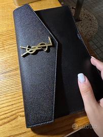 Pochette Yves Saint Laurent nera con logo oro originale acquistata su Farfetch nel 2024 completa di dust bag e cartellino, usata un paio di volte come nuova , no perditempo