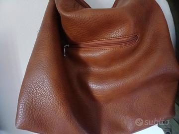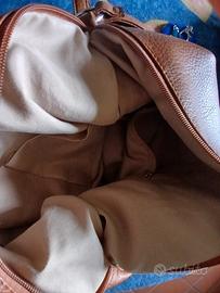 Comoda borsetta a zainetto con tascone frontale con chiusura a cerniera,tasca sul retro sempre con chiusura a cerniera . Internamente 3 scomparti con varie tasche interne sia con che senza cerniera.
