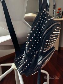 Borsa zaino nera con borchie. Tasca esterna capiente e interno con tasche.