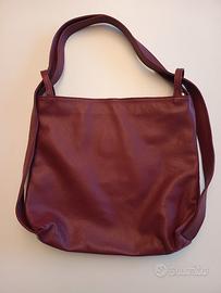 Borsa/zaino convertibile, in vera pelle. Misure 37x40. Un taschino esterno con zip, tre taschini interni, uno con zip.