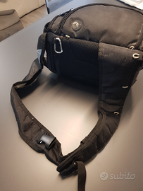 Compatta borsa/zaino monospalla con parecchi scomparti per macchina fotografica reflex. Come nuova ,praticissima ed utilissima