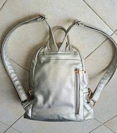 Borsa zaino in similpelle colore argento, in buono stato, piccola abrazione evidenziata in foto