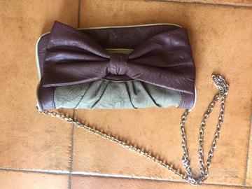 Vendo Borsa di Zara usata ma ottime condizioni color grigio e viola con fiocco, medie dimensioni, tracolla a catena in metallo.