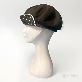 Berretto da donna nero con visiera, stile coppola, caratterizzato da un motivo a pois sulla parte anteriore L’interno è sfoderato Il modello presenta una visiera cucita da un lato che assicura solidità e un aspetto pulito e funzionale. Prodotto con cura e maestria in Italia. 100% Cotone Taglia 55