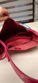 Vendo bellissima borsa firmata THUN, assolutamente nuova e mai utilizzata. La borsa è realizzata in pregiata pelle sintetica con texture martellata, in una vivace e raffinata tonalità di rosso magenta/lampone. Il design è estremamente funzionale: si tratta di una borsa "2 in 1" che include all'interno una seconda borsa/pochette estraibile in tessuto scamosciato coordinato, dotata di chiusura a zip e tracolla propria. Perfetta per tenere al sicuro gli oggetti personali o da usare separatamente. DETTAGLI E MISURE: Marca: THUN (logo metallico dorato sul fronte) Stato: Nuova, mai usata Colore: Magenta / Rosso Lampone Dimensioni corpo borsa: Altezza: circa 30 cm Lunghezza (base): circa 32 cm Larghezza (profondità): circa 13 cm Caratteristiche: Doppi manici regolabili con borchie dorate, interno spazioso, include pochette interna con cerniera. Borsa elegantissima e versatile, ideale sia per il lavoro che per il tempo libero. Un'ottima idea regalo!