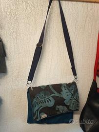 borsetta verde in cuoio borsetta grigia in tessuto di canapa borsa bicolor in tessuto grigio e marrone e plastica riciclata artigianale