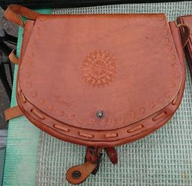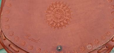 - Borsa a bisaccia in pelle marrone lavorata (foto 3 e 4)