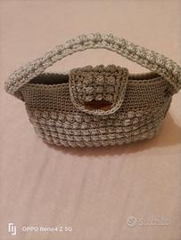 borse fatte a mano ad uncinetto alt.20 larghezza 15 quella di bicolore alt20 larghezza 19 l'atra.