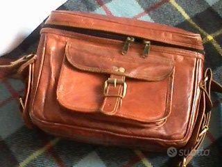 Borse alta pelletteria: Boldrini, Cavalli (nuova), Ami Paris A) borsa tracolla firmata "Selleria Boldrini" vera pelle HQ pelletteria di lusso. Pellame di vitello conciato al vegetale, lavorazione a mano colore tabacco naturale Interno foderato in cotone colore verde e marchio stampato 2 scomparti: uno con ulteriore tasca con cerniera 2 tasche esterne (anteriore e posteriore)con cerniera Patta a chiusura con cricchetto e serratura Cinghia in pelle, regolabile Misure cm. 24 x 21 x prof 7,5 - 8 Ottima, senza segni, praticamente come NUOVA eur 325 un po' trattabili ( il nuovo era 486 eur ) ...... B) Borsa NUOVA collezione "B. CAVALLI" a mano, spalla o tracolla , con ampia cinghia regolabile colore blu scuro lucido Fodera marrone medio lucido 3 scomparti con tasche interne, più tasca posteriore, tutti con cerniera. Ecopelle di alta qualità Larghezza 28 cm. , altezza 19, prof. 9,5 NUOVA eur 60 tratt ...... C) Borsa AMI vintage usata, ma molto ben tenuta ORIGINALE del marchio della moda AMI-Paris-France mod. "AMI's Camera Bag" piccola valigetta in verticale, semirigida, rinforzata Modello CULT, MOLTO replicato ancora oggi con prodotti made in India Destinata in origine ad ospitare una fotocamera con accessori, è poi diventata di uso comune per capienza e stile vintage Ampia cinghia regolabile a tracolla o spalla, luce attuale 51 cm corpo centrale con due cursori contrappsti su cerniera. Interno rivestito in panno, con cuscinetto protettivo anteriore e 2 bande velcro per bloccaggio TRE tasche esterne con fibbia Largh. 32, h. 20, prof. 10, e 14 considerando la tasca anteriore Colore pelle naturale tabacco Presenta sulla faccia posteriore 9 piccole (2-3 mm.) macchie nere Ottimo vintage eur 140 tratt ......... Altre foto disponibili Molte altre borse di qualità e accessori abbigliamento su altri miei annunci Sconti con acquisti multipli e/o anche su altri miei annunci Visione, consegna gratuita in Torino