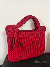 Borse artigianali realizzate a mano con uncinetto grande, caratterizzate da una trama spessa e moderna che dona stile e resistenza.