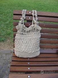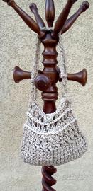 Borse traforate realizzate a mano con tecnica mista, in spago di lino, canapa, juta e sisal, dall'aspetto naturale, con un tocco di interessante decoratività.