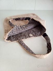 Vendo borse artigianali nuove, uncinetto cotone makò colore ecrù, con manici- foderata con taschina interna e chiusura bottone automatico.