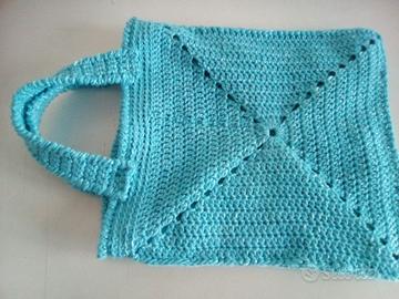 Quadrata cotone azzurra con lurex argento , foderata con taschina, cm base 24x26cm altezza senza manci, con i manici cm36.