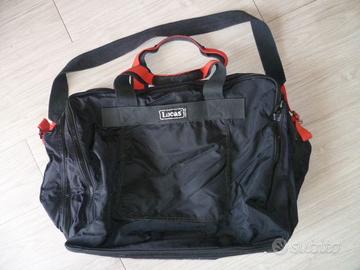 Borsa per trasporto indumenti ed abbigliamento sportivo, adatto anche per viaggi, completamente apribile, numerosi scomparti con zip, dimensioni 55 x 43 x 34, doppi manici e tracolla regolabile per trasporto, ottimo stato 10 euro