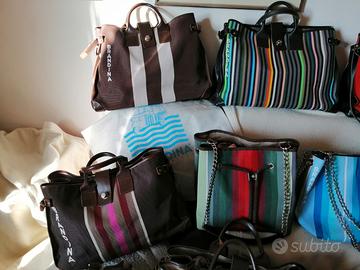 borse Brandina, il marchio romagnolo che produce borse utilizzando cuoio trattato, ecopelle e tele delle brandine da spiaggia.