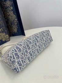 Serie Miss Caro in rafia, estiva, tessuto azzurro con pelle di vitello bianco crema, colori chiari freschi e curativi, forma piccola e semplice, con classico tessuto obliquo e lettere dorate retrò, elegante e raffinata, super leggera per uso personale, capiente, può contenere tutti i tipi di oggetti quotidiani, dotata di tracolla regolabile in pelle, può essere elegantemente portata a spalla o a mano.