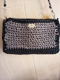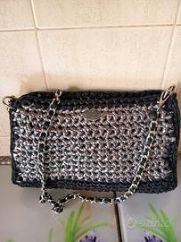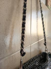Borsetta di larghezza 30cm altezza 17 colore argento e nero finiture con cerniera di chiusura e fodera con tasca interna