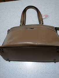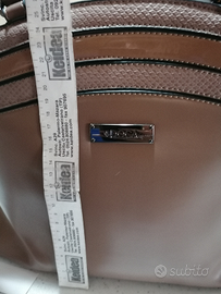 Borsa marrone Doca con etichetta, con divisori interni con cerniere. Presenta anteriormente un disegno con due fasce pitonate, posteriormente la pelle è liscia con una tasca munita di cerniera. Da indossare a spalla,oppure con tracolla. Spedizione gratuita in tutta Italia.