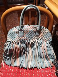 BORSA AZZURRA in pelle con frange.