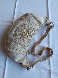 Borsa a spalla Gai Mattiolo Jeans, in tessuto ricamato con perline e strass, in condizioni perfette, a 25,00